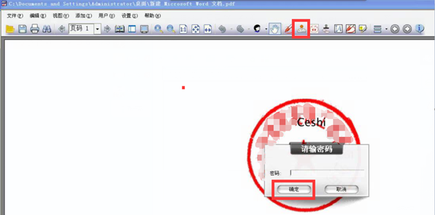 (3)点击工具栏中的签章图标,将弹出证书中的签章及密码输入密码即可完成签章,如下图所示: